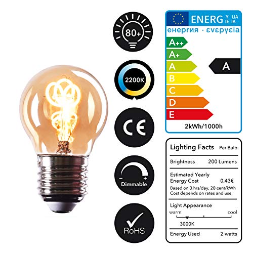 PRACHTIGE VERLICHTING: Zij het in een huis, appartement, eetkamer, woonkamer, restaurant, bar, café, hotel of winkel, deze vintage lamp helpt een aangename sfeerverlichting te creëren met warm licht. Hij past in elk nachtlamp of plafondlamp, zowel in een kinderkamer als in een badkamer.