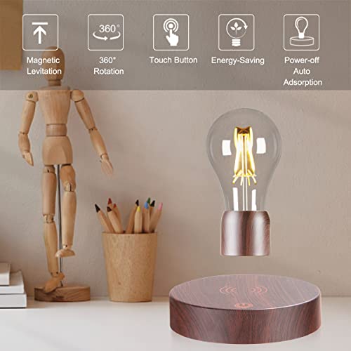 Specification: Drijvende gloeilamp, zwevende draadloze LED-lamp Bureaulamp Magnetische levitatie Rotatie gloeilampen (Ronde Bruine…